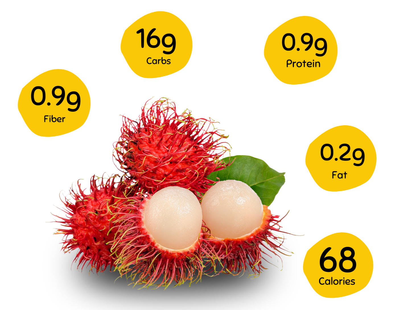 Rambutan is a tropical fruit known for its exotic appearance and juicy, sweet flavor. With its hairy red shell and translucent white flesh, rambutan offers a taste that’s similar to lychee but with a slightly creamier texture and hint of floral notes. Rich in vitamin C, fiber, and antioxidants, it's as nutritious as it is unique.